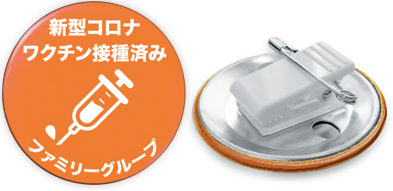 スタッフ全員が接種も終え「ワクチン接種済バッチ」をつけております。