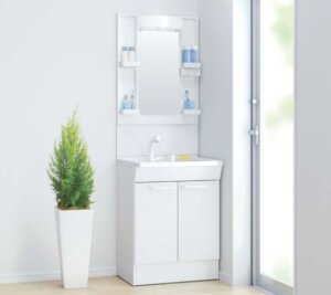 安くて高品質なスタンダード洗面化粧台『TOTO Vシリーズ』。お求めやすい価格にもかかわらず、汚れが残りにくい洗面ボウルや、水とお湯の区切りが分かりやすいエコシングル水栓といった、人気の機能もしっかり搭載!