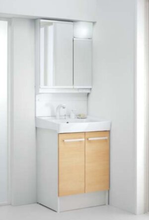 鏡裏や配管部分、けこみなどのスペースを工夫して納品スペースに。出し入れしやすい引き出しなどバリエーション豊富なキャビネットを品揃えしています。