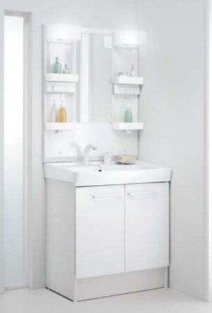TOTO サクア 洗面化粧台 間口750mm 3面鏡(裏面収納・LED照明)片引き出し エアインスウィング水栓 エコミラー 扉:スタンダード