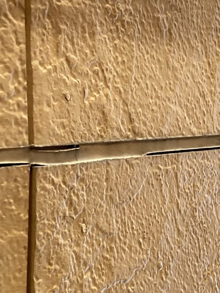 【症例:重度劣化状態のコーキング。弾力性を失いひび割れが深刻化している】