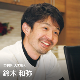 家族がとても喜んでいる時は、とてもやりがいを感じます。工務部として、現場調査、設計提案、見積、お客様へのプレゼン、ご契約、そして信頼できる工事部へ引き継ぎ、現場監督が現場を進めてくれるという一連の流れを担当することで、日々自分の成長にも繋がっていることが実感できます。