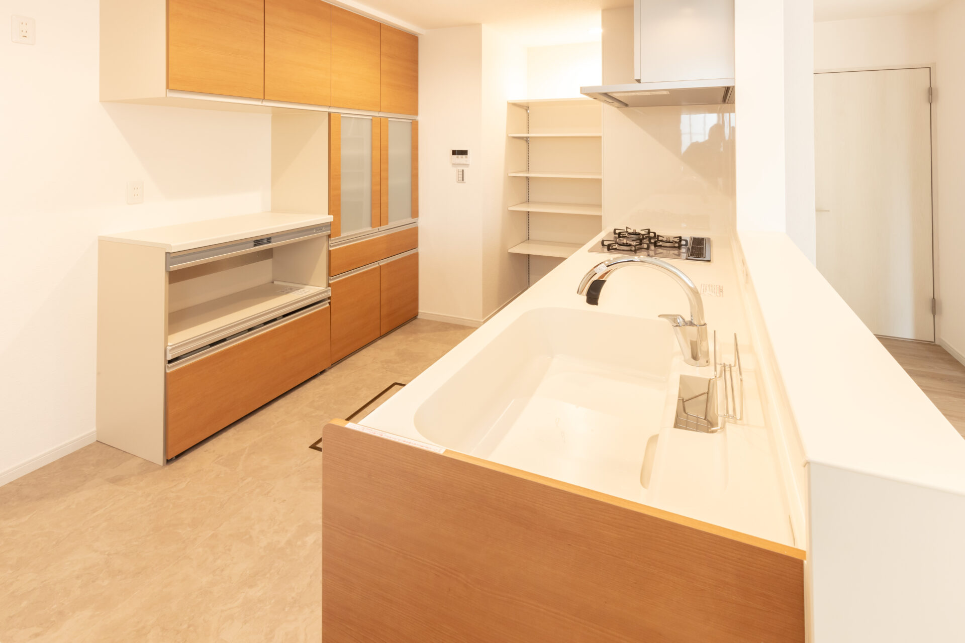 ・キッチンにL型のパントリースペース設置しました。